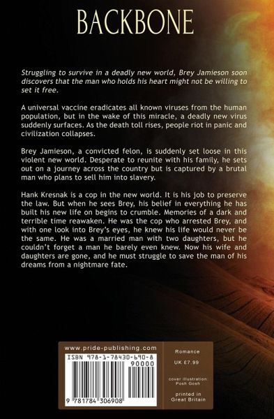 Struggling to survive in a deadly new world, Brey Jamieson soon discovers that the man who holds his heart might not be willing to set it free. A universal vaccine eradicates all known viruses from the human population, but in the wake of this miracle, a deadly new virus suddenly surfaces. As the death toll rises, people riot in panic and civilization collapses. Brey Jamieson, a convicted felon, is suddenly set loose in this violent new world. Desperate to reunite with his family, he sets out on a journey across the country but is captured by a brutal man who plans to sell him into slavery. Hank Kresnak is a cop in the new world. It is his job to preserve the law. But when he sees Brey, his belief in everything he has built his new life on begins to crumble. Memories of a dark and terrible time reawaken. He was the cop who arrested Brey, and with one look into Brey's eyes, he knew his life would never be the same. He was a married man with two daughters, but he couldn't forget a man he barely even knew. Now his wife and daughters are gone, and he must struggle to save the man of his dreams from a nightmare fate.