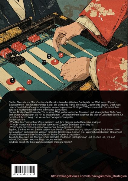 Dieses umfassende Backgammon Buch führt systematisch durch alle wichtigen Aspekte des faszinierenden Brettspiels. Von den Grundlagen bis zu anspruchsvollen Wettkampfstrategien werden alle relevanten Themen praxisnah behandelt.Der erste Teil vermittelt die essentiellen Grundlagen des Backgammon: Spielaufbau, Regelwerk und fundamentale Spielmechaniken werden detailliert erklärt. Besonderes Augenmerk liegt auf der korrekten Bewegung der Steine sowie dem wichtigen Timing der Züge.Im taktischen Teil lernen Leser die wesentlichen Elemente des Positionsspiels kennen. Dazu gehören die Kontrolle strategisch wichtiger Punkte, flexible Steinverteilung und der Aufbau vorteilhafter Stellungen. Auch das Risikomanagement und die Optimierung von Spielzügen werden ausführlich behandelt.Fortgeschrittene Strategien bilden einen weiteren Schwerpunkt: Von verschiedenen Eröffnungsvarianten über effektives Rennspiel bis hin zu komplexen Kontaktspielstrategien werden alle wichtigen Konzepte vermittelt. Dabei helfen zahlreiche Beispiele und Übungsaufgaben beim praktischen backgammon lernen.Der Turnierteil richtet sich an ambitionierte Spieler und behandelt spezifische Wettkampfaspekte wie Matchpoint-Strategien, Zeitmanagement sowie die Crawford- und Jacoby-Regel. Auch das zunehmend wichtige Online-Spiel wird mit seinen Besonderheiten beleuchtet.Dieses moderne Backgammon Buch eignet sich sowohl für Einsteiger als auch für erfahrene Spieler, die ihr Spiel auf ein höheres Niveau bringen möchten. Die systematische Herangehensweise ermöglicht ein strukturiertes Lernen aller wichtigen Spielelemente.Dieses Buch wurde unter Verwendung innovativer Technologien wie Künstlicher Intelligenz sowie eigens entwickelter Tools erstellt - etwa bei der Ideenfindung, der Recherche, dem Schreiben, dem Lektorat, der Qualitätssicherung und der Gestaltung dekorativer Illustrationen.So möchten wir Ihnen ein besonders stimmiges, modernes und noch hochwertigeres Leseerlebnis bieten.