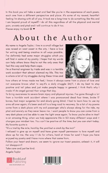 ""In this book you will take a seat and feel like you're in the experience of each poem, each one from a different perspective and place. It's some of my rawest, heartfelt feeling I'm sharing with all of you. It took me a long time to do something like this and I am beyond proud of myself! I do all this regardless of all the physical and mental pain, anxiety and ptsd and I will continue to do it too. Please enjoy my book ? -¿""