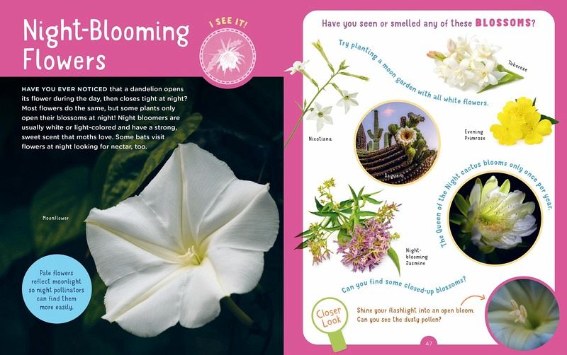 Kids explore nature at night with scavenger hunts, flashlight games, and field guides for nocturnal creatures with a real magnifying glass, stickers, and a nature journal.