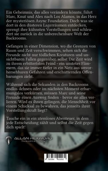 "Collector's Edition" mit 22 exklusiven FarbdruckenEin Geheimnis, das alles verändern könnte, führt Marc, Knut und Alex nach Los Alamos, in das Herz der mysteriösen Async-Foundation. Doch was sie dort in den düsteren Lagerräumen entdecken, sprengt ihre kühnsten Vorstellungen und schleudert sie zurück in die unberechenbare Welt der Backrooms.Gefangen in einer Dimension, wo die Grenzen von Raum und Zeit verschwimmen, sehen sich die Freunde nicht nur tödlichen Kreaturen und unsichtbaren Fallen gegenüber. Die Zeit selbst wird zu ihrem erbittertsten Feind - ein unstetes Flimmern, das sie immer tiefer in ein Netz aus unvorhersehbaren Gefahren und erschütternden Offenbarungen zieht.Während sich die Sekunden in den Backrooms endlos dehnen oder im nächsten Moment erbarmungslos verkürzen, müssen Marc und seine Freunde einen Ausweg finden - bevor sie alles verlieren. Wird es ihnen gelingen, die Menschheit vor einem Schicksal zu bewahren, das jenseits ihrer Vorstellungskraft liegt?Tauche einin ein atemloses Abenteuer, in dem jede Entscheidung zählt und selbst die Zeit gegen dich spielt!