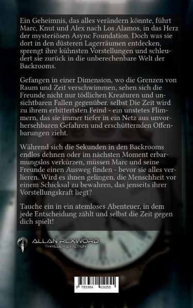 "Collector's Edition" mit 22 exklusiven FarbdruckenEin Geheimnis, das alles verändern könnte, führt Marc, Knut und Alex nach Los Alamos, in das Herz der mysteriösen Async-Foundation. Doch was sie dort in den düsteren Lagerräumen entdecken, sprengt ihre kühnsten Vorstellungen und schleudert sie zurück in die unberechenbare Welt der Backrooms.Gefangen in einer Dimension, wo die Grenzen von Raum und Zeit verschwimmen, sehen sich die Freunde nicht nur tödlichen Kreaturen und unsichtbaren Fallen gegenüber. Die Zeit selbst wird zu ihrem erbittertsten Feind - ein unstetes Flimmern, das sie immer tiefer in ein Netz aus unvorhersehbaren Gefahren und erschütternden Offenbarungen zieht.Während sich die Sekunden in den Backrooms endlos dehnen oder im nächsten Moment erbarmungslos verkürzen, müssen Marc und seine Freunde einen Ausweg finden - bevor sie alles verlieren. Wird es ihnen gelingen, die Menschheit vor einem Schicksal zu bewahren, das jenseits ihrer Vorstellungskraft liegt?Tauche einin ein atemloses Abenteuer, in dem jede Entscheidung zählt und selbst die Zeit gegen dich spielt!