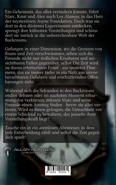 "Collector's Edition" mit 22 exklusiven FarbdruckenEin Geheimnis, das alles verändern könnte, führt Marc, Knut und Alex nach Los Alamos, in das Herz der mysteriösen Async-Foundation. Doch was sie dort in den düsteren Lagerräumen entdecken, sprengt ihre kühnsten Vorstellungen und schleudert sie zurück in die unberechenbare Welt der Backrooms.Gefangen in einer Dimension, wo die Grenzen von Raum und Zeit verschwimmen, sehen sich die Freunde nicht nur tödlichen Kreaturen und unsichtbaren Fallen gegenüber. Die Zeit selbst wird zu ihrem erbittertsten Feind - ein unstetes Flimmern, das sie immer tiefer in ein Netz aus unvorhersehbaren Gefahren und erschütternden Offenbarungen zieht.Während sich die Sekunden in den Backrooms endlos dehnen oder im nächsten Moment erbarmungslos verkürzen, müssen Marc und seine Freunde einen Ausweg finden - bevor sie alles verlieren. Wird es ihnen gelingen, die Menschheit vor einem Schicksal zu bewahren, das jenseits ihrer Vorstellungskraft liegt?Tauche einin ein atemloses Abenteuer, in dem jede Entscheidung zählt und selbst die Zeit gegen dich spielt!