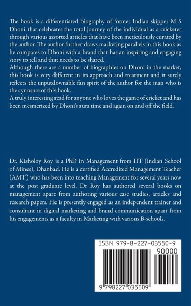The book is a differentiated biography of former Indian skipper M S Dhoni that celebrates the total journey of the individual as a cricketer through various assorted articles that have been meticulously curated by the author. The author further draws marketing parallels in this book as he compares to Dhoni with a brand that has an inspiring and engaging story to tell and that needs to be shared. Although there are a number of biographies on Dhoni in the market, this book is very different in its approach and treatment and it surely reflects the unputdownable fan spirit of the author for the man who is the cynosure of this book. A truly interesting read for anyone who loves the game of cricket and has been mesmerized by Dhoni's aura time and again on and off the field.