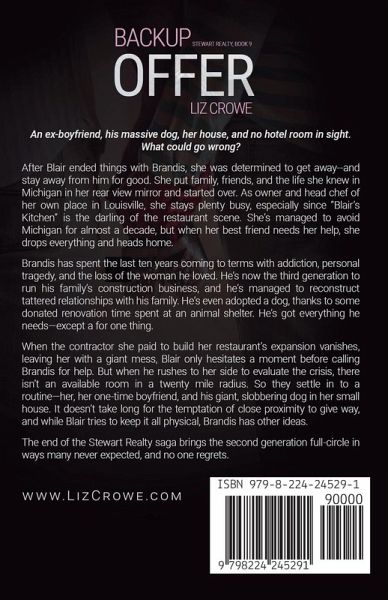 An ex-boyfriend, his massive dog, her house, and no hotel room in sight. What could go wrong? After Blair ended things with Brandis, she was determined to get away--and stay away from him for good. She put family, friends, and the life she knew in Michigan in her rear view mirror and started over. As owner and head chef of her own place in Louisville, she stays plenty busy, especially since "Blair's Kitchen" is the darling of the restaurant scene. She's managed to avoid Michigan for almost a decade, but when her best friend needs her help, she drops everything and heads home. Brandis has spent the last ten years coming to terms with addiction, personal tragedy, and the loss of the woman he loved. He's now the third generation to run his family's construction business, and he's managed to reconstruct tattered relationships with his family. He's even adopted a dog, thanks to some donated renovation time spent at an animal shelter. He's got everything he needs-except a for one thing. When the contractor she paid to build her restaurant's expansion vanishes, leaving her with a giant mess, Blair only hesitates a moment before calling Brandis for help. But when he rushes to her side to evaluate the crisis, there isn't an available room in a twenty mile radius. So they settle in to a routine-her, her one-time boyfriend, and his giant, slobbering dog in her small house. It doesn't take long for the temptation of close proximity to give way, and while Blair tries to keep it all physical, Brandis has other ideas. The end of the Stewart Realty saga brings the second generation full-circle in ways many never expected, and no one regrets.
