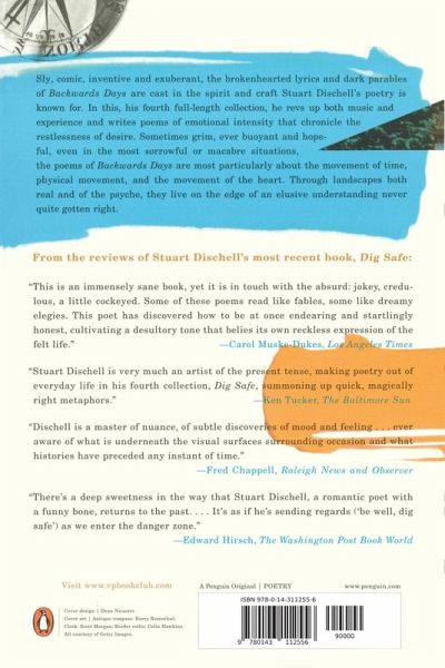 Another set of antidotal lyrics and story-poems from Stuart Dischell Sly, comic, inventive, and exuberant, the brokenhearted lyrics and dark parables of Backwards Days are cast in the spirit and craft Stuart Dischells poetry is known for. In this, his fourth full-length collection, he revs up both music and experience and writes startling poems of emotional intensity that chronicle the restlessness of desire. Sometimes grim, ever buoyant and hopeful, even in the most sorrowful or macabre situations, the poems of Backwards Days are most particularly about the movement of time, physical movement, and the movement of the heart. Through landscapes both real and of the psyche, they live on the edge of an elusive understanding never quite gotten right.
