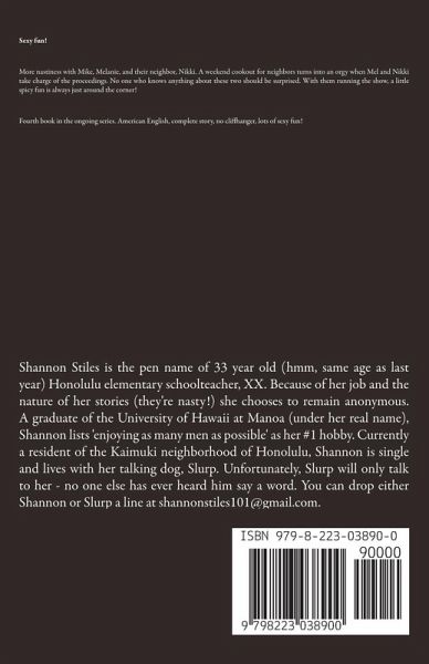 Sexy fun! More nastiness with Mike, Melanie, and their neighbor, Nikki. A weekend cookout for neighbors turns into an orgy when Mel and Nikki take charge of the proceedings. No one who knows anything about these two should be surprised. With them running the show, a little spicy fun is always just around the corner! Fourth book in the ongoing series. American English, complete story, no cliffhanger, lots of sexy fun!