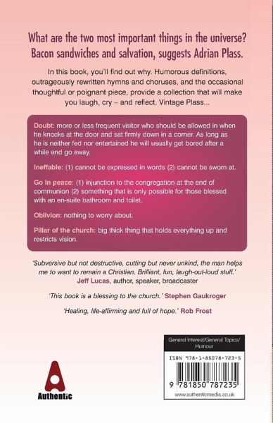 What are the two most important things in the universe? Bacon sandwiches and salvation, according to Adrian Plass. This book combines one-line definitions with more thoughtful pieces and makes you laugh, cry - and reflect.