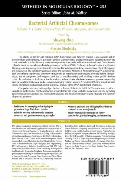 Expert investigators describe not only the classic methods, but also the many novel techniques they have perfected for the transfer of large DNAs into the cells of both microbes and animals via large-insert recombinant DNAs. Volume 1 presents readily reproducible techniques for library construction, physical mapping, and sequencing.. An accompanying volume, Volume 2: Functional Studies, provides a wide variety of methods and applications for functional analysis of the DNA-transformed organisms. Besides protocols, each chapter includes scientific reviews, software tools, database resources, genome sequencing strategies, and illustrative case studies.
