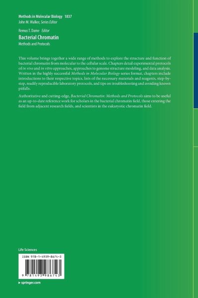 Determination of the 3D Genome Organization of Bacteria using Hi-C.- Overview of Processing and Analyzing Hi-C Data on Bacteria.- GeF-seq A Simple Procedure for Base Pair Resolution ChIP-seq.- Genomic SELEX Screening of Regulatory Targets of Escherichia coli Transcription Factors.- Modular assembly of Synthetic Secondary Chromosomes.- High-resolution Characterization of DNA/Protein Complexes in Living Bacteria.- Imaging of Transcription and Replication in the Bacterial Chromosome with Multicolor Three-dimensional Superresolution Structured Illumination Microscopy.- Genetic Approaches to Study the Interplay Between Transcription and Nucleoid-associated Proteins in Escherichia coliAtomic Force Microscopy Imaging and Analysis of Prokaryotic Genome Organization.- Dynamic Light Scattering of DNA-ligand Complexes.- Microscale Thermophoresis Analysis of Chromatin Interactions.- Quantitative Determination of DNA Bridging Efficiency of Chromatin Proteins.- Approaches for Determining DNA Persistence Length using Atomic Force Microscopy.- Quantitation of DNA Binding Affinity using Tethered Particle Motion.- Observing Bacterial Chromatin Protein-DNA Interactions by Combining DNA Flow-stretching with Single-molecule Imaging.- Unravelling the Biophysical Properties of Chromatin Proteins and DNA using Acoustic Force Spectroscopy.- Unravelling DNA organization with single-molecule Force Spectroscopy using Magnetic Tweezers.- In Vitro Transcription Assay to Quantify Effects of H-NS Filaments on RNA Chain Elongation by RNA Polymerase.- Deciphering 3D Organization Of Chromosomes using Hi-C Data.- Molecular Dynamics Simulation of a Feather-boa Model of Bacterial Chromosome.