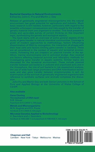 ...this...book is a useful and timely initiation into bacterial genetics in the environment and has much to commend it... Society for General Microbiology; ...the book is well worth reading...the book presents tantalizing glimpses of the current state of knowledge of gene transfer in the environment and whets the appetite for future developments in the field. Trends in Genetics; ...The chapters in this book are of a consistently high standard and give an excellent account of the problems and issues of this area of ecology... Biochemical Systematic and Ecology