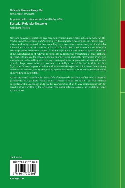 Authoritative and accessible, Bacterial Molecular Networks: Methods and Protocols is intended primarily for post-graduate students and researchers working in the field of experimental and computational microbiology and provides a combination of up-to-date reviews along with detailed protocols written by the developers of bioinformatics resources, such as databases and software tools.