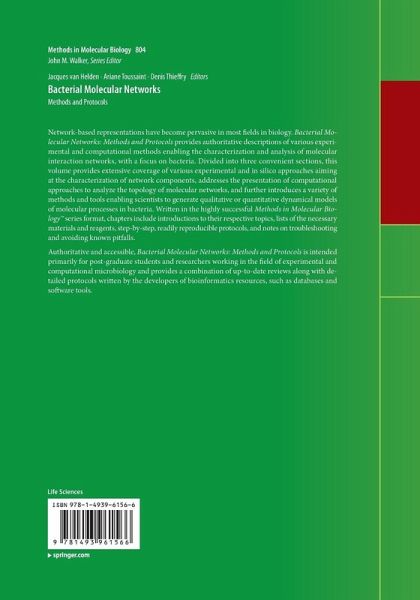 Authoritative and accessible, Bacterial Molecular Networks: Methods and Protocols is intended primarily for post-graduate students and researchers working in the field of experimental and computational microbiology and provides a combination of up-to-date reviews along with detailed protocols written by the developers of bioinformatics resources, such as databases and software tools.