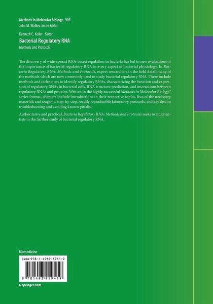 The discovery of wide-spread RNA-based regulation in bacteria has led to new evaluations of the importance of bacterial regulatory RNA in every aspect of bacterial physiology. In Bacteria Regulatory RNA: Methods and Protocols, expert researchers in the field detail many of the methods which are now commonly used to study bacterial regulatory RNA. These include methods and techniques to identify regulatory RNAs, characterizing the function and expression of regulatory RNAs in bacterial cells, RNA structure prediction, and interactions between regulatory RNAs and proteins. Written in the highly successful Methods in Molecular Biology(TM) series format, chapters include introductions to their respective topics, lists of the necessary materials and reagents, step-by-step, readily reproducible laboratory protocols, and key tips on troubleshooting and avoiding known pitfalls.