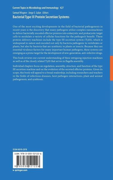 Introduction.- Evolution of type III secretion systems.- Transcriptional and post-transcriptional regulatory mechanisms controlling type III secretion.- Assembly of type III secretion machines.- Structure of the type III secretion needle complex.- Structure and assembly of filamentous structures associated with type III secretion machines.- Structure and function of the type III secretion-associated sorting platform.- Molecular organization and assembly of the protein export apparatus.- Export mechanisms and energy transduction in type III secretion machines.- Needle length control and substrate switching in type III secretion machines.- The tip complex: sensing the host cell.- Chaperones and targeting mechanisms.