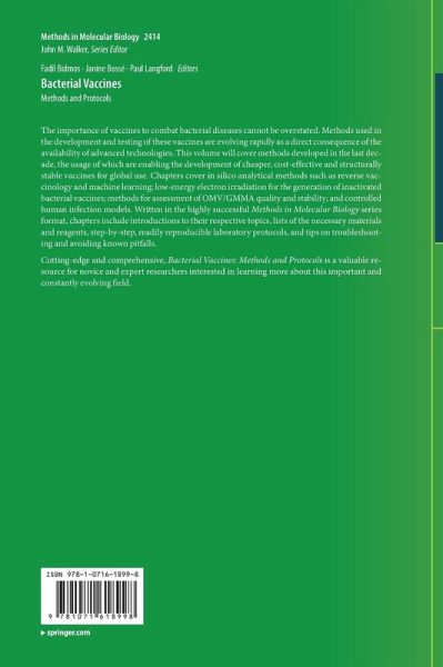 Vaccine Design by Reverse Vaccinology and Machine Learning.- Application of Reverse Vaccinology and Immunoinformatic Strategies for the Identification of Vaccine Candidates against Shigella flexneri.- Purification of Prospective Vaccine Antigens from Gram-Positive Pathogens by Immunoprecipitation.- Rapid Surface Shaving for Proteomic Identification of Novel Surface Antigens for Vaccine Development.- Two-Dimensional Electrophoresis Coupled with Western Blot as a Method to Detect Potential Neutralizing Antibody Targets from Gram-Negative Intracellular Bacteria.- Panproteome Analysis of the Human Antibody Response to Bacterial Vaccines and Challenge.- Low-Energy Electron Irradiation (LEEI) for the Generation of Inactivated Bacterial Vaccines.- Design and Production of Hybrid Antigens for Targeting Integral Outer Membrane Proteins in Gram-Negative Bacteria.- Preparation of Trimethyl Chitosan-Based Polyelectrolyte Complexes for Peptide Subunit VaccineDelivery.- Multiepitope Fusion Antigen - MEFA, An Epitope- and Structure-Based Vaccinology Platform for Multivalent Vaccine Development.- Production, Isolation, and Characterization of Bioengineered Bacterial Extracellular Membrane Vesicles Derived from Bacteroides thetaiotaomicron and Their Use in Vaccine Development.- Membrane Vesicles Produced by Shewanella vesiculosa HM13 as a Prospective Platform for Secretory Production of Heterologous Proteins at Low Temperatures.- Glycine Induction Method: Effective Production of Immunoactive Bacterial Membrane Vesicles with Low Endotoxin Content.- Methods for Assessment of OMV/GMMA Quality and Stability.- Production of Vaccines using Biological Conjugation.- Immunological Assessment of Lung Responses to Inhalational Lipoprotein Vaccines against Bacterial Pathogens.- Determination of Maternal and Infant Immune Responses to Pertussis Vaccination in Pregnancy.- Generation of a Universal Human Complement Source by Large-Scale Depletion of IgG and IgM from Pooled Human Plasma.- Assessment of Serum Bactericidal and Opsonophagocytic Activity of Antibodies to Gonococcal Vaccine Targets.- Opsonophagocytic Killing Assay to Measure Anti-Group A Streptococcus Antibody Functionality in Human Serum.- Neisseria lactamica Controlled Human Infection Model.- Analyzing Macrophage Infection at the Organ Level.- Multi-Color Flow Cytometry and High-Dimensional Data Analysis to Probe Complex Questions in Vaccinology.