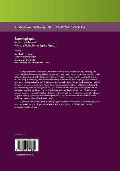 Ranging from the evolution of pathogenicity to oceanic carbon cycling, the many and varied roles that bacteriophages play in microbial ecology and evolution have inspired increased interest within the scientific community. Bacteriophages: Methods and Protocols pulls together the vast body of knowledge and expertise from top international bacteriophage researchers to provide both classical and state-of-the-art molecular techniques. With its well-organized modular design, Volume 2: Molecular and Applied Aspects examines a multitude of topics, including the bacteriophage genomics, metagenomics, transcriptomics, and proteomics, along with applied bacteriophage biology. Written in the highly successful Methods in Molecular Biology(TM) series format, chapters consist of brief introductions to the subject, lists of the necessary materials and reagents, readily reproducible laboratory protocols, and a Notes section which details tips on troubleshooting and avoiding known pitfalls.