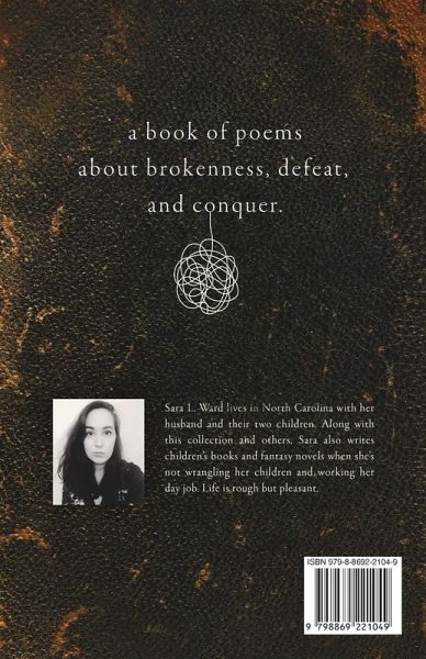 A book of poems about brokenness, defeat and conquer written by Sara L Ward. Set in the five stages of grief, this a tale of a girl who had to rise from the dead. From her mind to yours, she gives you her life and poetry; with hopes that the person reading it will find within themselves their own strength, compassion and openness. This book contains trigger warnings involving sexual assault, domestic violence and suicide.