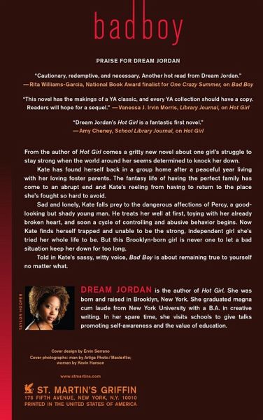 Dream Jordan is back with a follow-up to the acclaimed Hot Girl Kate is devastated to find herself back in a group home after a peaceful year of living with her loving foster parents, Lynn and Ted. The fantasy life of having the perfect family has come to an abrupt end and Kate's reeling from having to return to the place she's fought so hard to avoid. Sad and lonely, Kate soon falls prey to the dangerous affections of Percy, a good looking but shady young man. He treats her well at first, manipulating her already broken heart, and soon a cycle of controlling and abusive behavior begins. Now Kate finds herself trapped and unable to be the strong, independent girl she's tried her whole life to be. But this Brooklyn-born girl is never one to let a bad situation keep her down for too long. Told in Kate's sassy, witty voice, Bad Boy is all about staying strong and remaining true to yourself even when it seems like the whole world is out to get you.