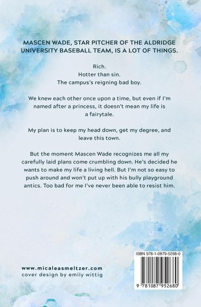 Mascen Wade, star pitcher of the Aldridge University baseball team, is a lot of things. Rich. Hotter than sin. The campus's reigning bad boy. We knew each other once upon a time, but even if I'm named after a princess, it doesn't mean my life is a fairytale. My plan is to keep my head down, get my degree, and leave this town. But the moment Mascen Wade recognizes me all my carefully laid plans come crumbling down. He's decided he wants to make my life a living hell. But I'm not so easy to push around and won't put up with his bully playground antics. Too bad for me I've never been able to resist him.¿
