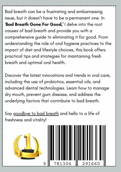 Bad breath can be a frustrating and embarrassing issue, but it doesn't have to be a permanent one. In "Bad Breath Gone For Good," you'll learn the root causes of bad breath and get comprehensive solutions to eliminating it for good. From understanding the role of oral hygiene practices to the impact of diet and lifestyle choices, this book offers practical tips and strategies for maintaining fresh breath and optimal oral health. Here's a little of what you'll discover inside this book: - The Causes of Bad Breath - Oral Hygiene Practices for Fresh Breath - The Role of Diet in Maintaining Fresh Breath - Hydration and Its Impact on Oral Health - Foods to Avoid for Fresh Breath - The Best Foods for Fresh Breath - The Importance of Regular Dental Check-Ups - How Smoking Affects Breath and Oral Health - Alcohol and Bad Breath: What You Need to Know - The Connection Between Sinus Infections and Bad Breath - Managing Dry Mouth to Prevent Bad Breath - Natural Remedies for Bad Breath - The Role of Probiotics in Oral Health - How to Use Mouthwash Effectively - The Benefits of Chewing Gum for Fresh Breath - The Impact of Medications on Breath Freshness - How to Keep Your Tongue Clean - The Importance of Flossing for Fresh Breath - Using Essential Oils for Better Breath - How Stress Affects Your Breath - The Role of Saliva in Oral Health - Managing Oral Infections to Prevent Bad Breath - How to Use a Water Flosser for Optimal Oral Health - Understanding the Impact of Sugar on Oral Bacteria - The Connection Between Gut Health and Breath Odor - The Benefits of Herbal Teas for Fresh Breath - How to Choose the Right Toothpaste - The Role of Dental Appliances in Oral Health - How to Prevent Morning Breath - The Best Practices for Brushing Your Teeth - The Impact of Chronic Diseases on Oral Health - How to Identify and Treat Gum Disease - The Importance of a Balanced Diet for Oral Health - The Role of Antioxidants in Oral Health - Using Activated Charcoal for Fresh Breath - How to Keep Your Breath Fresh Throughout the Day - The Impact of Oral Hygiene on Overall Health - The Connection Between Allergies and Bad Breath - The Future of Oral Health: Innovations and Trends - And More! With expert advice and easy-to-follow techniques, "Bad Breath Gone For Good" empowers you to take control of your oral health and enjoy the confidence of a fresh, healthy smile. Say goodbye to bad breath and hello to a life of freshness and vitality!