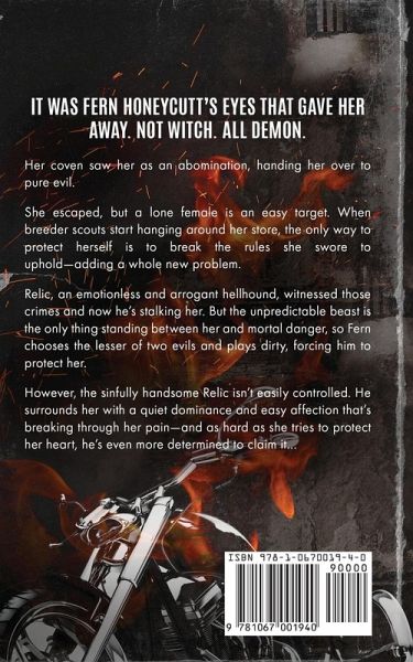It was Fern Honeycutt's eyes that gave her away. Not witch. All demon. Her coven saw her as an abomination, handing her over to pure evil. She escaped, but a lone female is an easy target. When breeder scouts start hanging around her store, the only way to protect herself is to break the rules she swore to uphold-adding a whole new problem. Relic, an emotionless and arrogant hellhound, witnessed those crimes and now he's stalking her. But the unpredictable beast is the only thing standing between her and mortal danger, so Fern chooses the lesser of two evils and plays dirty, forcing him to protect her. However, the sinfully handsome Relic isn't easily controlled. He surrounds her with a quiet dominance and easy affection that's breaking through her pain-and as hard as she tries to protect her heart, he's even more determined to claim it...