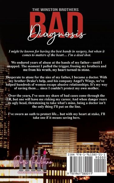 I might be known for having the best hands in surgery, but when it comes to matters of the heart... I'm a dead shot. We endured years of abuse at the hands of my father-until I snapped. The moment I pulled the trigger, freeing my brothers and me from his wrath, my heart turned to stone. Desperate to atone for the sins of my father, I became a doctor. With my brother Drake's help, and his company Angel's Wings, we've helped hundreds of women escape abusive relationships. It's my way of saving them... since I couldn't protect my own mother. Over the years, I've seen my share of bad cases come through the ER, but one will have me risking my career. And when danger rears its ugly head, threatening to take what's mine, being a doctor isn't the only thing I'll put on the line. I've sworn an oath to protect life... but with my heart at stake, I'll take one if it means saving hers.