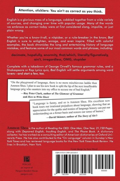Whether you consider yourself a stickler, a nitpicker, or a rule-breaker in the know, Bad English is sure to enlighten, enrage, and perhaps even inspire. Filled with historic and contemporary examples, the book chronicles the long and entertaining history of language mistakes, and features some of our most common words and phrases, including: