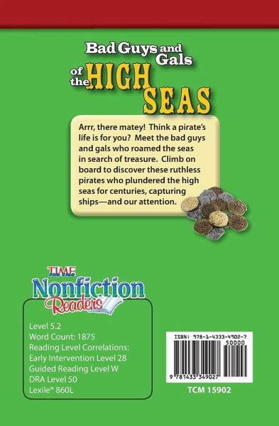 Elementary readers learn about famous pirates and pirate history in this nonfiction reader. Children will learn about famous pirates such as Captain Kidd Blackbeard Anne Bonny Black Bart Edward Low Lady Mary Killigrew and Mrs. Cheng.