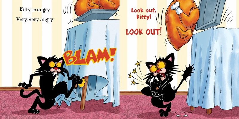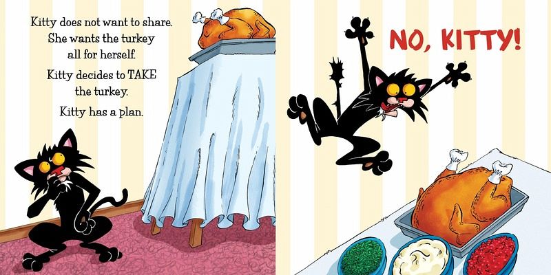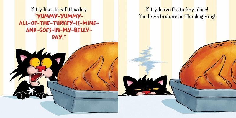 New York Times bestselling author/illustrator Nick Bruel's naughty feline is back in the holiday adventure Bad Kitty Does Not Like Thanksgiving. Kitty does not like Thanksgiving. Kitty LOVES Thanksgiving. Specifically, Kitty loves turkey . . . and will do anything to get her paws on it. So, Kitty comes up with a plan but in perfect cantankerous cat fashion, can't quite pull it off and ends up with the turkey (and all the fixins') on her head. No, Kitty does not like Thanksgiving.