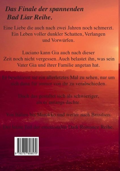 Eine Liebe die auch nach zwei Jahren immer noch schmerzt.Ein Leben voller dunkler Schatten, Verlangen und Vorwürfen.Luciano kann Gia auch nach dieser Zeit immer noch nicht vergessen.Auch belastet ihn was sein Vater Gia und ihrer Familieangetan hat. Er beschliesst sie ein allerletztes Mal zu sehen, nur um sich dann für immer von ihr zu verabschieden.Doch das gestaltet sich als schwerer, als er anfangs dachte. Von Italien bis Marokko und weiter nach Brasilien.Der letzte Teil der emotionalen und spannenden Bad Liar Reihe.