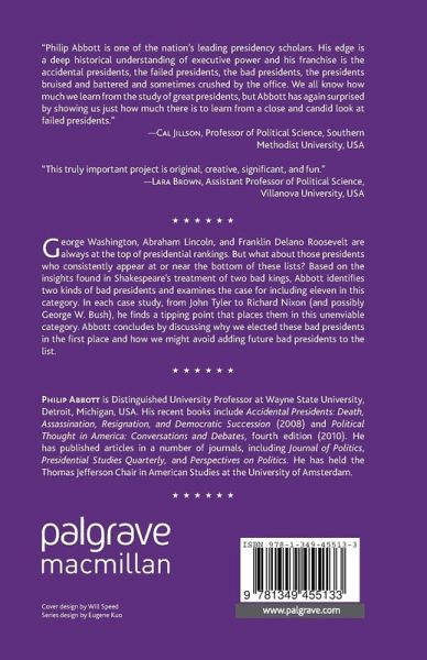 "Philip Abbott is one of the nation's leading presidency scholars. His edge is a deep historical understanding of executive power and his franchise is the accidental presidents, the failed presidents, the bad presidents, the presidents bruised and battered and sometimes crushed by the office. We all know how much we learn from the study of great presidents, but Abbott has again surprised by showing us just how much there is to learn from a close and candid look at failed presidents." - Cal Jillson, Professor of Political Science, Southern Methodist University, USA