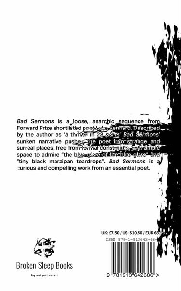 Bad Sermons is a loose, anarchic sequence from Forward Prize shortlisted poet Luke Kennard. Described by the author as 'a thriller in 23 parts' Bad Sermons' sunken narrative pushes the poet into strange and surreal places, free from formal constraints, with ample space to admire "the blue glare of the blue glare" and "tiny black marzipan teardrops". Bad Sermons is a curious and compelling work from an essential poet.