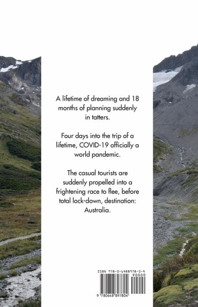A lifetime dreaming about a visit to Antarctica and South America was to be realised in 2020. After 18 months of planning the anticipation and excitement levels were high as tourists entered the aircraft for Argentina, both were relaxed and looking forward to what lay ahead. Five days into the trip and one day before entering the boat for the Antarctica adventure it all suddenly changed. Travel restrictions and border closes began in response to the World Health Organisation's declaration that COVID-19 was a world pandemic. A time of uncertainty and confusion faced decision makers. Understandingly countries were looking after themselves and their citizens, tourists concerns relegated in importance. The race was on to escape from the isolation of Ushuaia on the Southern tip of South America to a main international airport and then back to Australia. In this book Jane N. Hughes provides a personal insight into experiences she and her husband faced as fleeing tourist in this unusual situation.