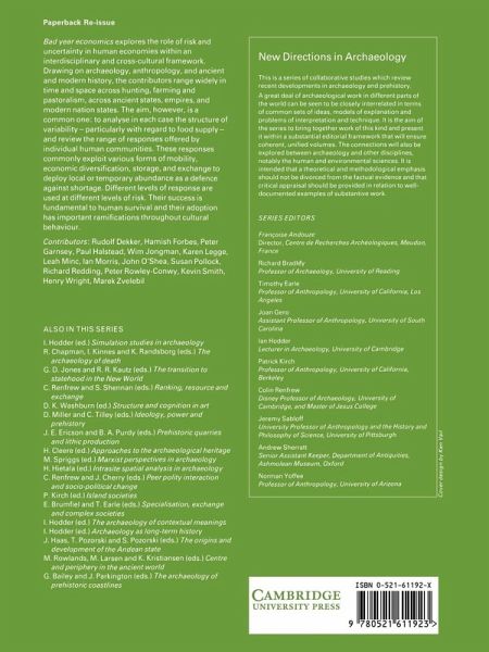 Bad Year Economics explores the role of risk and uncertainty in human economics within an interdisciplinary and cross-cultural framework. Drawing on archaeology, anthropology, and ancient and modern history, the contributors range widely in time and space across hunting, farming and pastoralism, across ancient states, empires, and modern nation states. The aim, however, is a common one: to analyse in each case the structure of variability - particularly with regard to food supply - and review the range of responses offered by individual human communities. These responses commonly exploit various forms of mobility, economic diversification, storage, and exchange to deploy local or temporary abundance as a defence against shortage. Different levels of response are used at different levels of risk. Their success is fundamental to human survival and their adoption has important ramifications throughout cultural behaviour.