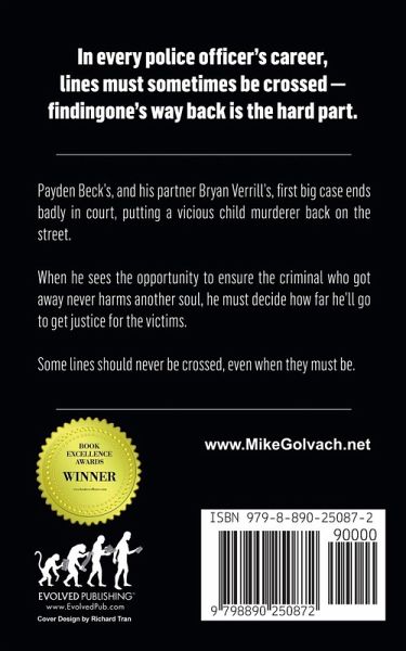 In every police officer's career, lines must sometimes be crossed-finding one's way back is the hard part.WINNER: Book Excellence Award 2023 - Best Suspense Fiction WINNER: Pinnacle Book Achievement Award, Winter 2022 - Best Crime Fiction FINALIST: Readers' Favorite Book Awards 2022 - Fiction-Mystery-Murder Payden Beck's, and his partner Bryan Verrill's, first big case ends badly in court, putting a vicious child murderer back on the street. When he sees the opportunity to ensure the criminal who got away never harms another soul, he must decide how far he'll go to get justice for the victims. Some lines should never be crossed, even when they must be. EVOLVED PUBLISHING PRESENTS the third novel in the award-winning "Payden Beck Crime Thriller" series, from the same author who brought you such greats as fiX, Home, and Missing Pieces.