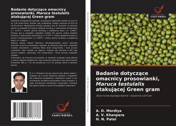 Sezonowe wyst¿powanie wykazäo, ¿e populacja szkodników wahäa si¿ od 0,51 do 3,20 larw/ro¿lin¿, podczas gdy uszkodzenia str¿ków wynosi¿y od 8,93 do 36,26 procent. Wspó¿czynnik korelacji populacji larw M. testulalis na zielonym gramie w Junagadh by¿ istotn¿ dodatni¿ korelacj¿ z maksymaln¿ temperatur¿ (r= 0,675*) i istotn¿ ujemn¿ korelacj¿ z pr¿dko¿ci¿ wiatru (r= -0,669*). Podczas gdy w przypadku uszkodze¿ str¿ków (%) wysoce istotna dodatnia korelacja z maksymaln¿ temperatur¿ (r= 0,747**), istotna dodatnia korelacja z jasnym nas¿onecznieniem (r= 0,687*) i istotna ujemna korelacja z pr¿dko¿ci¿ wiatru (r= -0,695*).Badania polowe ró¿nych dziesi¿ciu odmian/genotypów grama zielonego przeciwko omacnicy prosowiance wykazäy, ¿e najni¿sz¿ liczb¿ larw i uszkodze¿ str¿ków stwierdzono u odmiany Meha (0,92 larwy/ro¿lin¿ i 9,28 procent uszkodze¿), która okazäa si¿ odporna. Podczas gdy odmiana K 851 by¿a wysoce podatna, rejestruj¿c 3,42 larwy/ro¿lin¿ i 33,26 procent uszkodze¿ str¿ków.Stwierdzono, ¿e omacnica prosowianka, M. testulalis osi¿gn¿¿a szczyt g¿ównie w trzecim tygodniu pädziernika i by¿a skutecznie zwalczana przez zastosowanie broflanilidu 300 g / l SC lub spinetoramu 11,7 SC podczas Kharif w zielonym gramie.