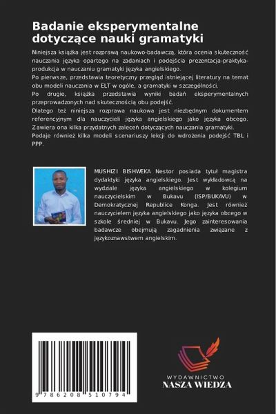 Niniejsza ksi¿¿ka jest rozpraw¿ naukowo-badawcz¿, która ocenia skuteczno¿¿ nauczania j¿zyka opartego na zadaniach i podej¿cia prezentacja-praktyka-produkcja w nauczaniu gramatyki j¿zyka angielskiego.Po pierwsze, przedstawia teoretyczny przegl¿d istniej¿cej literatury na temat obu modeli nauczania w ELT w ogóle, a gramatyki w szczególno¿ci.Po drugie, ksi¿¿ka przedstawia wyniki badä eksperymentalnych przeprowadzonych nad skuteczno¿ci¿ obu podej¿¿.Dlatego te¿ niniejsza rozprawa naukowa jest niezb¿dnym dokumentem referencyjnym dla nauczycieli j¿zyka angielskiego jako j¿zyka obcego. Zawiera ona kilka przydatnych zalece¿ dotycz¿cych nauczania gramatyki.Podaje równie¿ kilka modeli scenariuszy lekcji do wdro¿enia podej¿¿ TBL i PPP.