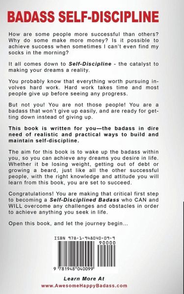 It seems we are surrounded by successful people everywhere these days and the majority of them make it look so easy. It’s hard to imagine that people can make a living from posting memes on a Facebook page or sharing pictures of their butt at various angles on Instagram. How are some people more successful than others? Why do some make more money? Is it possible to achieve success when sometimes I can’t even find my socks in the morning? It all comes down to self-discipline - the catalyst to making your dreams a reality. You probably know that everything worth pursuing involves hard work. Hard work takes time and most people give up before seeing any progress. But not you! You are not those people! You are a badass that won’t give up easily, and are ready for getting down instead of giving up. This book is written for you—the badass in dire need of realistic and practical ways to build and maintain self-discipline. My aim for this book is to wake up the badass within you, so you can achieve any dreams you desire in life. Whether learning to be more frugal with your money, giving up a troublesome vice or addiction, climbing Mount Everest, or remembering you’re vegan on a drunken night out just in time to avoid the temptation of a delicious kebab—with the right mindset, strategy, and system, you can make your goals attainable. In this book you will learn about: The key secrets of self-discipline: why some people have success, and most do not? It all comes down to a few vital points you will learn in this book. No more daydreaming: learn how through self-discipline, you can turn your dreams into reality. It doesn’t matter if you want to lose weight, improve relationships, own a Mercedes or live on the moon, with the knowledge you will learn, you can do it! Fight instead of fail: learn why and how your failures can be used to get out of your comfort-zone and discover the endless possibilities for success. Face fear: understand the core reasons behind fear and use self-discipline to cultivate the qualities and mindset of successful people. Stand your ground: learn how to stay focused to your goal despite all the distraction of this noisy world. How to set your own rules, defend them and teach others around you to act according to the rules you set. Discover what happens after success, and find out how to maintain it. Know the number one enemy that can take your success away, and how to fight back and keep it at bay. And so much, much more… If any of the above resonates with you, then congratulations! You are making that critical first step to becoming a self-disciplined badass who CAN and WILL overcome any challenges and obstacles in order to achieve anything you seek in life. Get this book now, and let the journey begin…