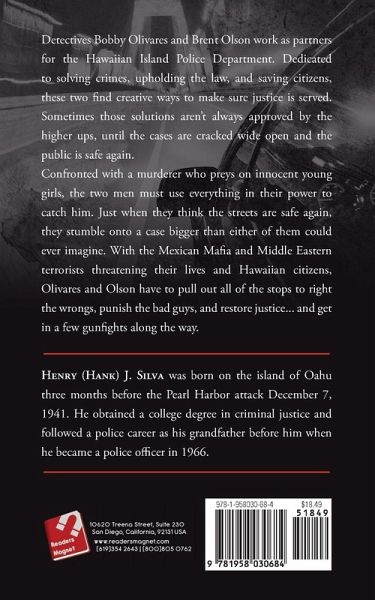 Detectives Bobby Olivares and Brent Olson work as partners for the Hawaiian Island Police Department. Dedicated to solving crimes, upholding the law, and saving citizens, these two find creative ways to make sure justice is served. Sometimes those solutions aren't always approved by the higher-ups, until the cases are cracked wide open and the public is safe again. Confronted with a murderer who preys on innocent young girls, the two men must use everything in their power to catch him. Just when they think the streets are safe again, they stumble onto a case bigger than either of them could ever imagine. With the Mexican Mafia and Middle Eastern terrorists threatening their lives and Hawaiian citizens, Olivares and Olson have to pull out all of the stops to right the wrongs, punish the bad guys, and restore justice... and get in a few gunfights along the way.