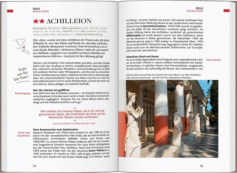 Wissenswertes über Korfu und die facettenreichen Ausflugsziele der Insel Gliederung der wichtigsten Sehenswürdigkeiten von A bis Z, kompetente Sterne-Bewertung der Top-Ziele, übersichtliche Infografiken und spannende 3D-Darstellungen Spannende Tourenvorschläge - Korfu in fünf verschiedenen Touren entspannt entdecken Erleben & Genießen auf Korfu - Empfehlungen unserer Autoren zu Hotels, Restaurants, Shopping und Entspannung Fundierte Expertentipps zum Staunen, Durchatmen und Spaß haben sowie für ganz besondere Erlebnisse, die einfach nicht für Geld zu bekommen sind Magische Momente für einen einzigartigen Urlaub auf Korfu - Kommen Sie zur rechten Zeit an den richtigen Ort und erleben Sie Unvergessliches Spannende Hintergrundinfos zur Geschichte von Korfu, zu Landschaft und Klima, Wirtschaft und Kultur, zu seinen Menschen und deren Alltag Servicekapitel mit praktischen Informationen zur Urlaubsplanung, für die Vorbereitung der Reise und Wissenswertes vor Ort