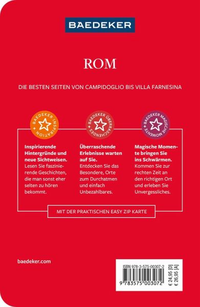 Rom, die Ewige Stadt! Die antike Metropole begeistert mit ihrer einzigartigen Fülle an kulturellen Schätzen. Mit unserem Baedeker Reiseführer spazieren wir mit Ihnen vom Vatikan vorbei an zahlreichen schönen Plätzen, dem Trevi Brunnen über das Forum Romanum und bewundern die antiken Ruinen des Kolosseums und das Pantheon. In vier inspirierenden Tourenvorschlägen besichtigen wir mit Ihnen nicht nur den Petersdom, die Spanische Treppe und die Sixtinische Kapelle, sondern bieten Ihnen auch eine Route, wie Sie Sightseeing durch Rom auf dem Fahrrad erleben können. Mit unserem Reiseführer zeigen wir Ihnen, wo Sie das Besondere erleben, klassische Pasta wie die alten Römer speisen und Sie im flippigen und ältesten Bezirk Trastevere am besten ausgehen können - damit Sie bei Ihrem Kurztrip nach Rom das Außergewöhnliche der italienischen Hauptstadt entdecken können.