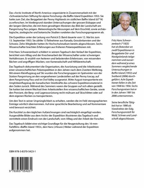 Das "Arctic Institute of North America" organisierte in Zusammenarbeit mit der "Schweizerischen Stiftung für Alpine Forschung" die Baffin Island Expedition 1953. Sie hatte zum Ziel, das Berggebiet der Penny Highlands im südlichen Baffin Island (67°N) zu erforschen. Im Vordergrund standen Untersuchungen der Eiskappe und der zugehörigen Gletscher, die mit ihren gewaltigen Moränen das Bild der Landschaft am Pangnirtung Pass prägen. Wetterbeobachtungen auf dem Eisschild, sowie archäologische, zoologische und botanische Untersuchungen rundeten das Forschungsprogramm ab.Die Expedition dauerte von Mai bis September 1953. Sie stand unter Leitung von P.D.Baird und zählte dreizehn Teilnehmer aus Kanada, Grossbritannien und der Schweiz. Das Tagebuch dokumentiert die Organisation, die Ausrüstung und die Arbeitsweise einer wissenschaftlichen Polarexpedition in den Jahren nach dem Zweiten Weltkrieg. Fritz Hans Schwarzenbach schildert den Verlauf der Expedition. Er berichtet vom Alltag und der Knochenarbeit der Forscher unter schwierigen Verhältnissen. Er erzählt von heiteren und belastenden Ereignissen, von reissenden Bächen und angriffigen Mücken, von Kameradschaft und Hilfsbereitschaft.Das Tagebuch bildete eine wichtige Grundlage für die Neugestaltung des damals gedrehten 16mm-Farbfilms "Baffin Island Expedition 1953".