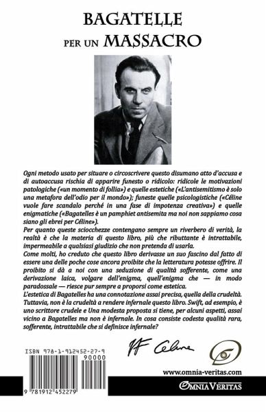 Per molto tempo ho cercato di spiegarmi perché Bagatelles pour un massacre fosse l'unico libro veramente infernale prodotto dalla letteratura francese dopo Choderlos de Laclos. Ogni metodo usato per situare o circoscrivere questo disumano atto d'accusa e di autoaccusa rischia di apparire funesto o ridicolo: ridicole le motivazioni patologiche (« un momento di follia ») e quelle estetiche (« L'antisemitismo è solo una metafora dell'odio per il mondo »); funeste quelle psicologistiche (« Céline vuole fare scandalo perché in una fase di impotenza creativa ») e quelle enigmatiche (« Bagatelles è un pamphiet antisemita ma noi non sappiamo cosa siano gli ebrei per Céline »). Per quanto queste sciocchezze contengano sempre un riverbero di verità, la realtà è che la materia di questo libro, più che ributtante è intrattabile, impermeabile a qualsiasi giudizio che non pretenda di usarla. Come molti, ho creduto che questo libro derivasse un suo fascino dal fatto di essere una delle poche cose ancora proibite che la letteratura potesse offrire. Il proibito si dà a noi con una seduzione di qualità sofferente, come una derivazione laica, volgare dell'enigma, quell'enigma che - in modo paradossale - riesce pur sempre a proporsi come estetica. L'estetica di Bagatelles ha una connotazione assai precisa, quella della crudeltà. Tuttavia, non è la crudeltà a rendere infernale questo libro. Swift, ad esempio, è uno scrittore crudele e Una modesta proposta si tiene, per alcuni aspetti, assai vicino a Bagatelles ma non è infernale. In cosa consiste codesta qualità rara, sofferente, intrattabile che si definisce infernale?