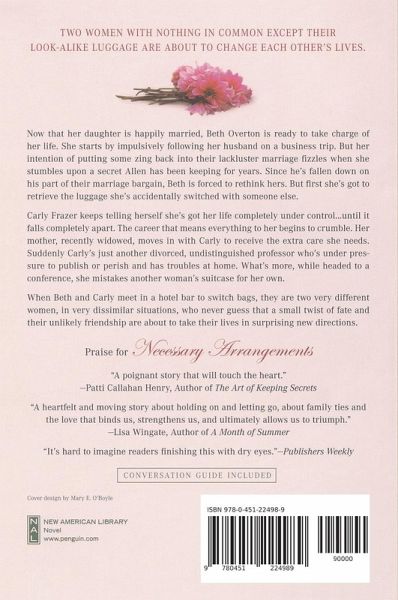 Two women with nothing in common except look-alike luggage embark on a journey that will transform their lives... When Beth Overton, a stay-at-home mom, learns that her husband has fallen short on his part of their marriage bargain, she's forced to rethink hers. But first she's got to retrieve the luggage she's accidentally switched with someone else... Carly Frazer, a divorced history professor, keeps telling herself she's got her life completely under control...until it falls completely apart. With a major career move in doubt and her recently widowed mother moving in, Carly's got troubles galore-and another woman's suitcase. When Beth and Carly meet in a hotel bar to switch bags, they are two very different women who never guess that a twist of fate, and their subsequent unlikely friendship, are about to take their lives in surprising new directions...