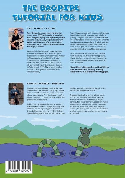 Congratulations! You have purchased one of the most comprehensive textbooks for children for learning the bagpipes. Recommended by the best pipers in the world!The children's textbook is suitable for absolute beginners from the age of 6 as a companion book to the lessons. In our bagpipe school, your child will receive pedagogical tuition of the highest level.The Bagpipe Tutorial for Children contains many tunes composed by our teacher Susy Klinger. Furthermore, it contains the most important finger techniques as well as many exercises that your child needs to successfully learn the bagpipes. Fairy Flora and Patrick MacCrimmon guide your child through the textbook and show how to learn the bagpipes from scratch with playful exercises.This book is also used for training purposes by many bagpipe youth bands as well as bagpipe schools. Its aim is to give the learning child a technically and musically solid foundation and expert guidance on the route to becoming an accomplished piper.To complement the Bagpipe Tutorial for Children, we recommend the Bagpipe Tutorial App. The app is the world's most comprehensive multimedia reference work for fingering techniques that are needed for playing the bagpipes. With the help of over 250 soundtracks and visual displays, your child will learn all the note combinations, embellishments, all the tunes found in the Bagpipe Tutorial as well as many important exercises needed in playing the Scottish bagpipes. With the Bagpipe Tutorial App you always have all the videos for the exercises and tunes available with you on your smart phone or tablet for your child.Susy Klinger's Bagpipe Tutorial for Children sets a milestone in expertly teaching children how to play the Scottish bagpipes. Do you have any questions about playing the bagpipes or are you looking for the right practice chanter? Send us an e-mail. We will be pleased to advise you in detail.