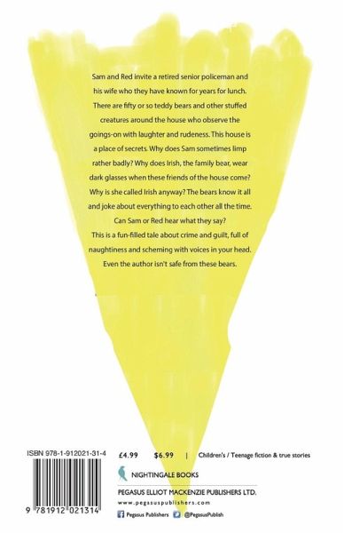 Sam and Red invite a retired senior policeman and his wife who they have known for years for lunch. There are fifty or so teddy bears and other stuffed creatures around the house who observe the goings-on with laughter and rudeness. This house is a place of secrets. Why does Sam sometimes limp rather badly? Why does Irish, the family bear, wear dark glasses when these friends of the house come? Why is she called Irish anyway? The bears know it all and joke about everything to each other all the time. Can Sam or Red hear what they say?This is a fun-filled tale about crime and guilt, full of naughtiness and scheming with voices in your head. Even the author isn't safe from these bears.