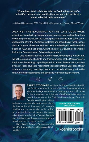 Against the backdrop of the late Cold War, a tiny American start-up company forged a secret deal to place American scientific payloads aboard the Soviet space station MIR. Born out of sheer desperation after the Challenger explosion and grounding of the US space shuttle program, the agreement was negotiated and approved behind the backs of NASA and Congress, with the help of US government officials inside the Commerce and Defense departments. On a cold gray morning in February 1988, the company founder met with three graduate students and their professor at the Massachusetts Institute of Technology to put his plans into action. Baikonur Man, written by one of those students, recounts the subsequent five-year saga of how science, comradery, hardship, drama, and occasional lunacy led to the first American experiments and payloads to fly on Russian rockets.
