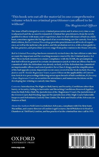 The question of bail arises every time a case is adjourned and the accused is remanded. This key text provides a uniquely comprehensive account of the law, practice, and procedure governing bail at every stage in an action from the police station to the House of Lords. It includes the relevant legislation and procedural rules, case law, and also offers guidance on ethics as well as research findings in this area. This new edition has been completely updated to take account of major changes introduced by the forthcoming Criminal Justice Act.