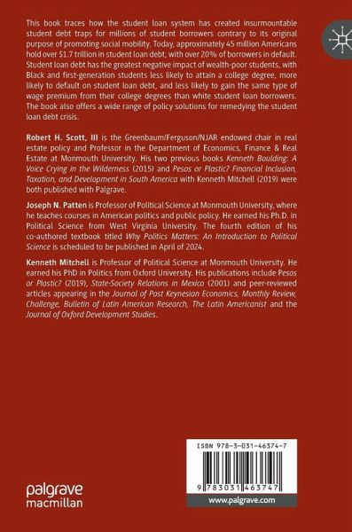 This book traces how the student loan system has created insurmountable student debt traps for millions of student borrowers contrary to its original purpose of promoting social mobility. Today, approximately 45 million Americans hold over $1.7 trillion in student loan debt, with over 20% of borrowers in default. Student loan debt has the greatest negative impact of wealth-poor students, with Black and first-generation students less likely to attain a college degree, more likely to default on student loan debt, and less likely to gain the same type of wage premium from their college degrees than white student loan borrowers. The book also offers a wide range of policy solutions for remedying the student loan debt crisis.